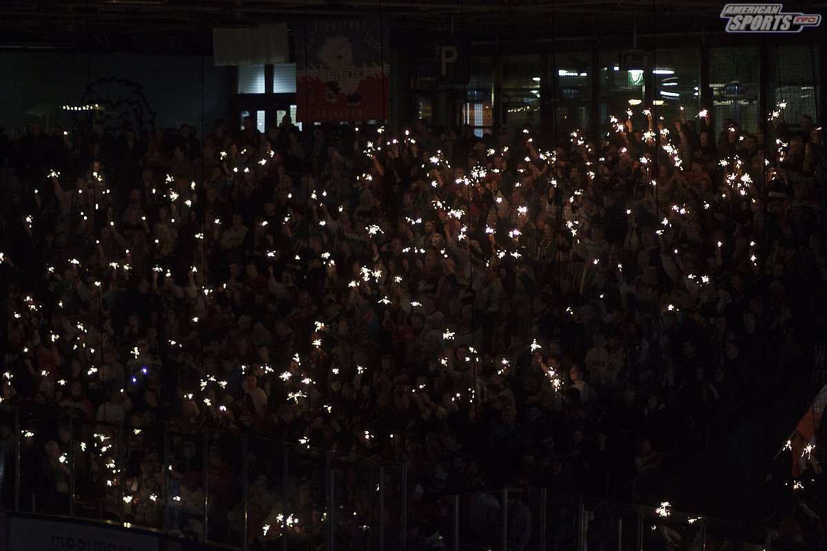 Aber zunächst wurde Frankfurts neuer Goalie, Ilya Andryukhov, vorgestellt und begrüßt. Für ihn war es natürlich ein großartiger Einstand, direkt gegen eine Spitzenmannschaft starten zu dürfen. Er war es auch, der in der Anfangsphase des Spiels die Chancen und Schüsse auf sein Tor entschärfen konnte. Damit konnte er sich schnell die Gunst der Frankfurter Fans sichern.